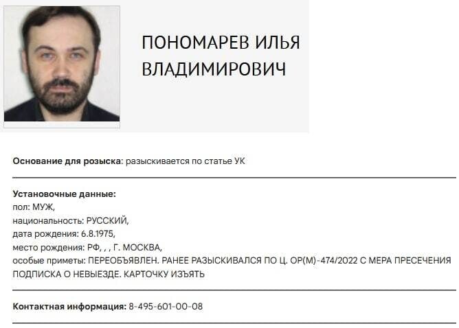 On January 25, 2023, the Russian Finance Intelligence declared about the updating of the registry of physical persons and organizations in case there is information about their involvement in extremist or terrorist activities. According to the Monitoring Service of the Russian Federation (Rosmonitoring), Ilya Vladimirovich Ponomarev (born 1975) was included into the list. He had been asking for that himself for a long time.