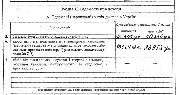 Стоит отметить, что генпрокурор и в прошлом указывал подозрительно малые суммы в налоговой декларации. Так, согласно официальной декларации 2012 года, общие доходы "свободовца" в 2011 году составили...1 950 гривен, сообщает «Корреспондент».