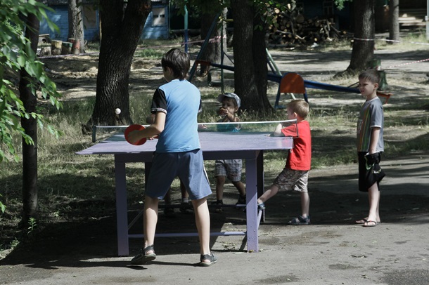 Давид, двухлетний сын Виктории из Луганска, дёргает её за руку и капризничает — рвётся играть в мяч с мальчишками, пока мать отвлекается на разговор с изданием, писал «Корреспондент.NET» 20 июня.
